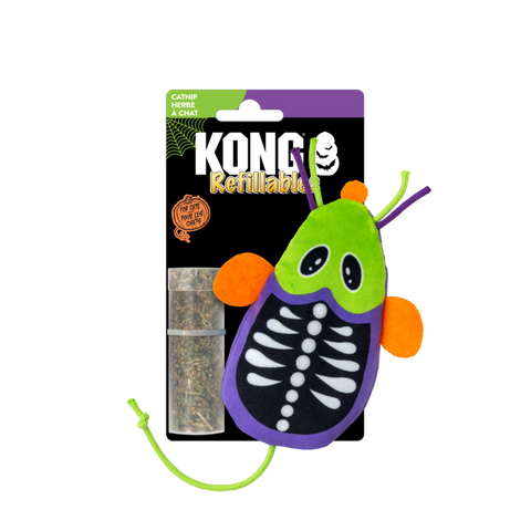 KONG Halloween Refillables Skeleton Mouse will keep your cat lurking, swatting, and pouncing all night! It's soft and cuddly on the outside, but inside, this bag of bones has a refillable pouch that holds fresh catnip securely in place. Our Halloween Refillables Mouse comes with a generous amount of KONG Premium North American Catnip in a reclosable vial.