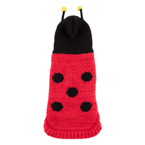 Super soft Chenille "Cute as a bug" Lady Bug Sweaters will be just adorable on your pooch. Can be used for either a great Halloween outfit or just to keep your pet warm. Made with sleeveless arm holes for easy on and off.