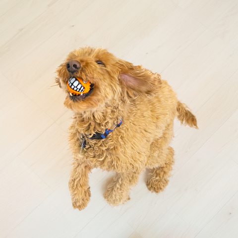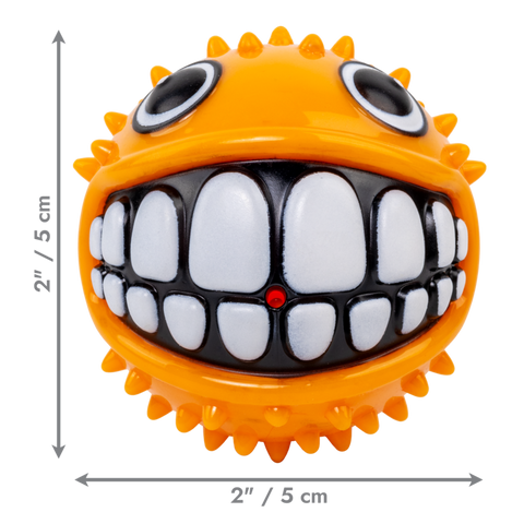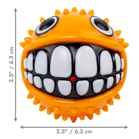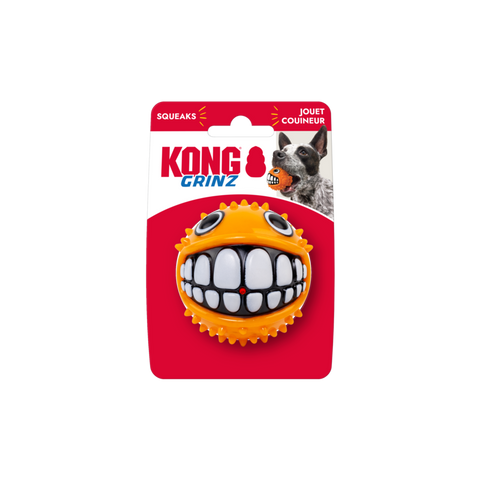 KONG Grinz characters are full of smiles, laughs, and fun! Each ball brings a dynamic bounce and its own style of durable texture. Each character’s raised features add a variety of erratic rolling and bouncing action—with fins, tails, hands, and more—that boost the fetching fun. Each toy also has the classic Grinz smile for purely playful entertainment!