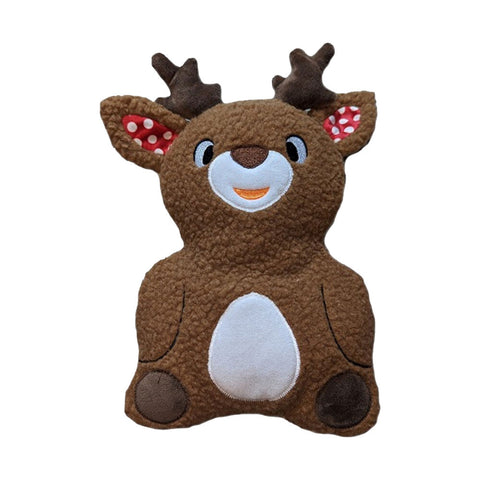 Let me guide your sleigh tonight! All Fleece toys are made with durable fleece fabric with an added mesh liner for additional toughness. The inside Poly Fill is made from recycled materials. Each toy has 3 squeakers and crinkle paper throughout. Our Toy measures 15"L x 7"D x 5"H