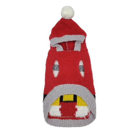 Super soft chenille Santa sweaters will be just adorable on your pooch. This Christmas hooded sweater will be the perfect outfit for the holidays. Made with sleeveless arm holes for easy on and off.