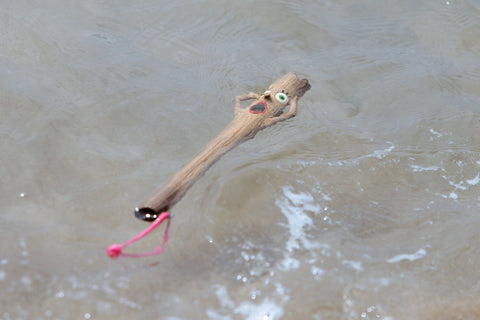 Splinter free, made from recycled rubber, has glow in the dark eyes and FLOATS IN WATER. Even has a rope for easy slobber free throwing.
