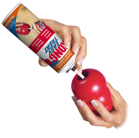 Want to make your stuffed KONG last longer? Freeze a stuffed KONG, topped with KONG Peanut Butter Easy Treat for a longer-lasting, mind occupying challenge. No Refrigeration required.