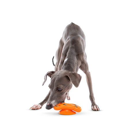 The perfect solution to relieve stress and anxiety, the Distracto-Pod Bone is ideal for trips to the vet, bathtime, and travel. Simply apply treats and/or paste, then affix the suction cup on the bottom of the bone to any hard surface. Keeping dogs calm, occupied and distracted, this durable toy is flexible and easy on teeth while engaging natural chewing as well as stimulating foraging and hunting instincts.